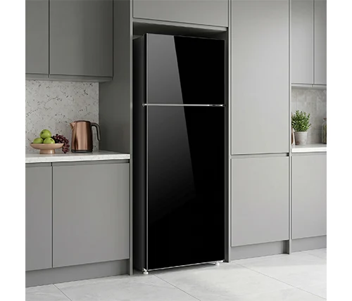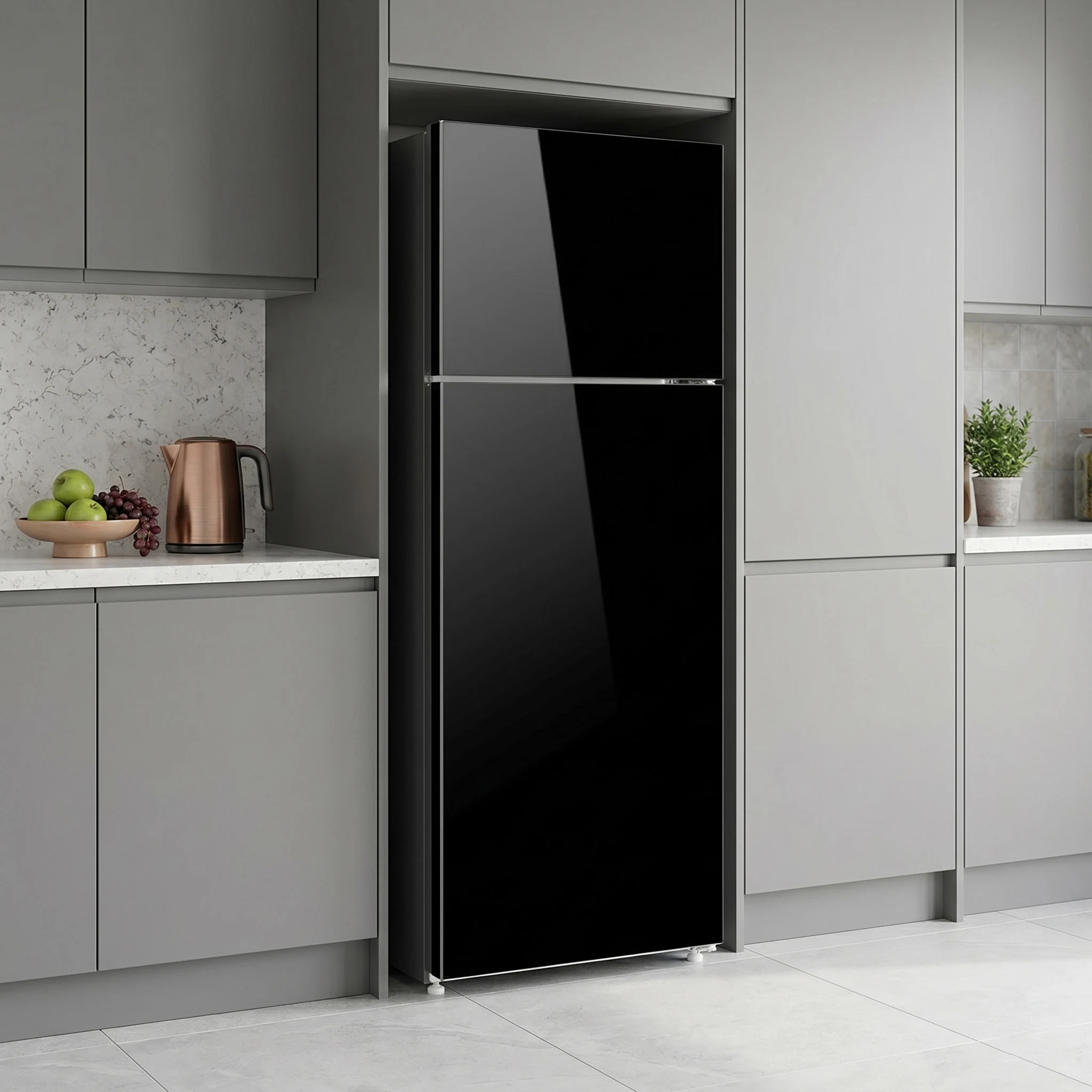 מקרר 2 דלתות מקפיא עליון נורמנדה 350 ליטר Normande ND-3803BG No Frost זכוכית שחורה - משלוח חינם