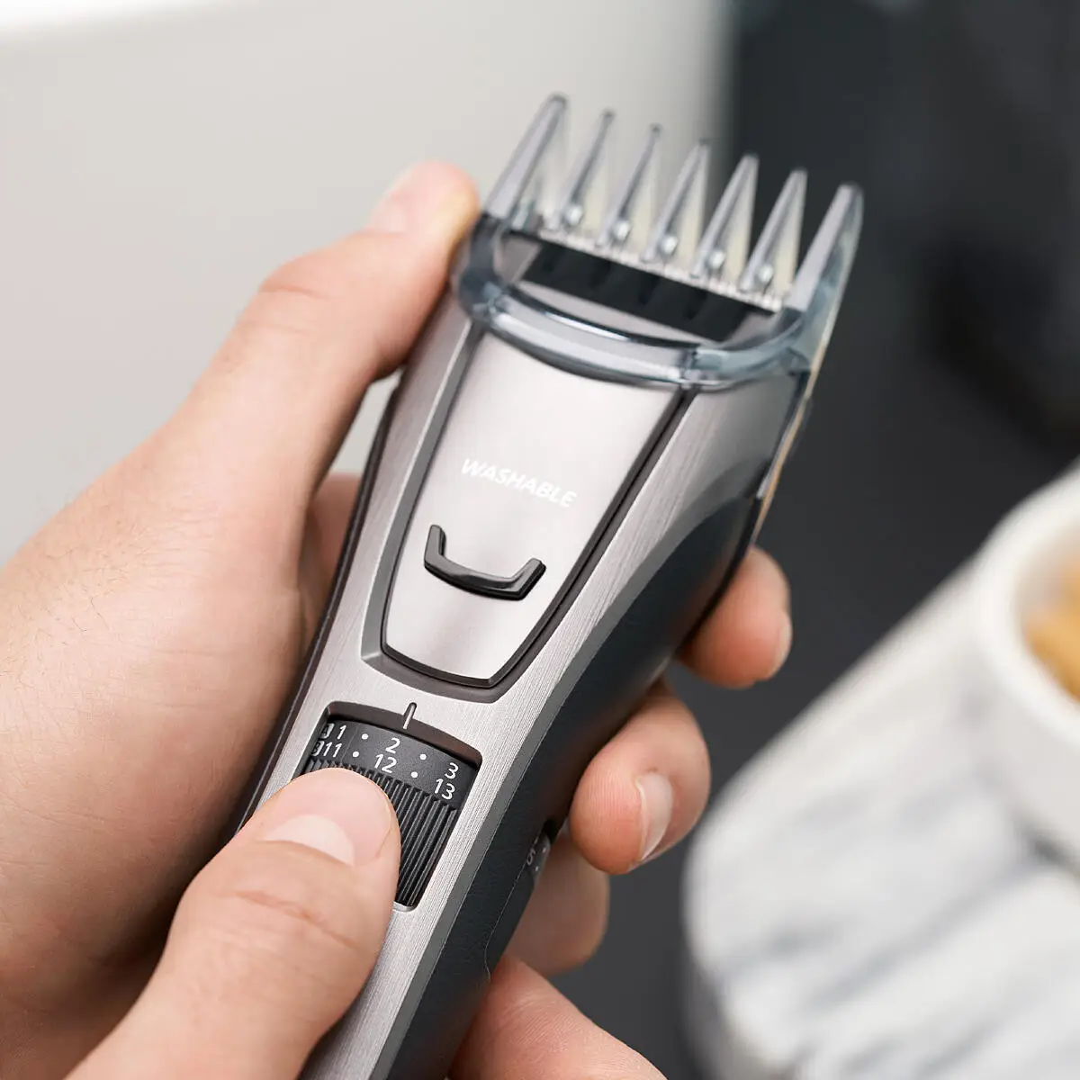 כדי להשיג את המראה האידיאלי עבורכם, ניתן לכונן במהירות את אורך החיתוך באמצעות חוגה נוחה במרווחים קטנים של עד 39 שלבים: