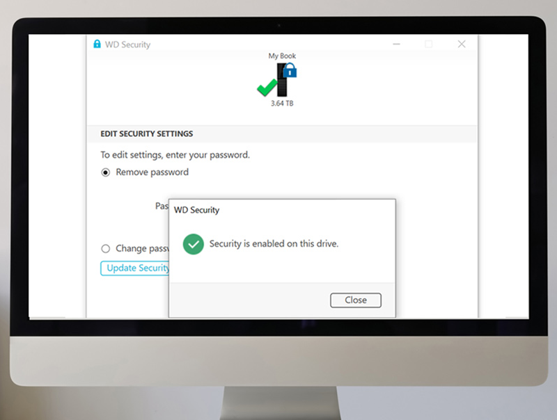 שמרו על הקבצים שלכם פרטיים ובטוחים בבית או בעסק. השתמשו בתוכנה המצורפת* כדי להוסיף שכבת אבטחה נוספת עם הגנה באמצעות סיסמה והצפנת AES מובנית של 256 ביט.