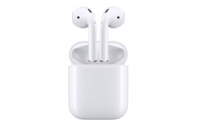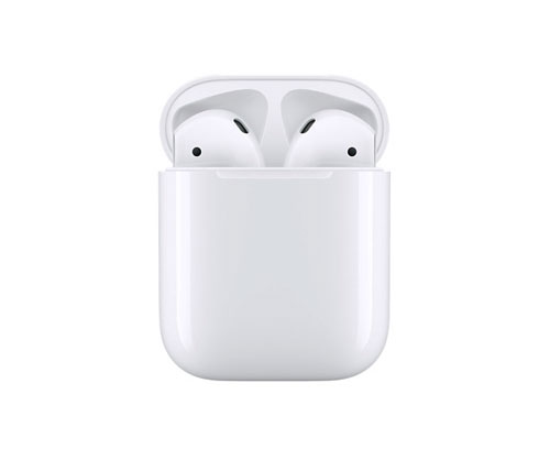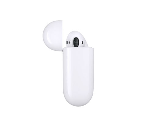 אוזניות אלחוטיות Apple AirPods + מיקרופון Bluetooth בצבע לבן הכוללות כיסוי טעינה