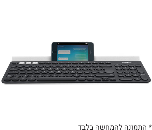 מקלדת Bluetooth אלחוטית Logitech K780 Multi-Device Quiet Desktop בצבע שחור עברית ואנגלית