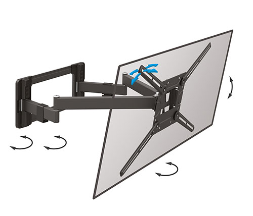 זרוע ברקן מפרקית 4 תנועות דגם 46LTVM למסכים בגודל "90 - "40, משקל מקסימלי 60 ק"ג בצבע שחור