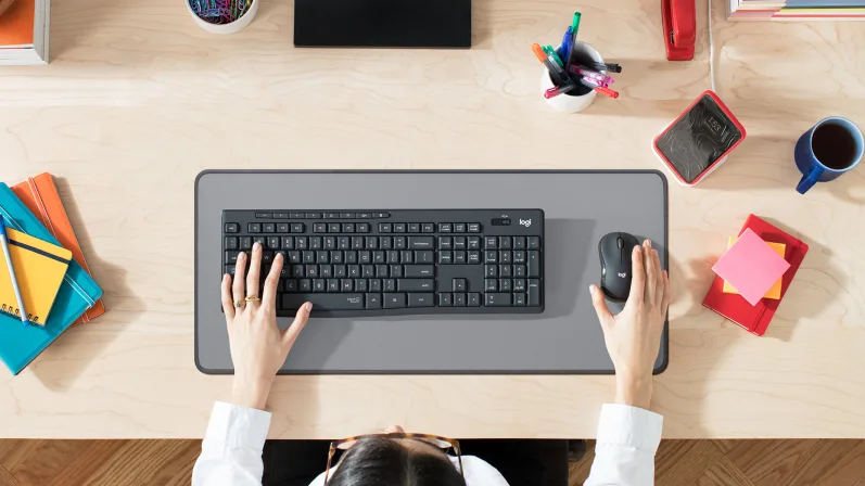 הכירו את Logitech MK295 Silent Wireless Combo הכולל SilentTouch - טכנולוגיית Logitech בלעדית שמבטלת למעלה מ-90% מרעשי המקלדת והעכבר. זו אותה תחושת לחיצה והקלדה של המשולבת הנמכרת בעולם ללא צלילי לחיצה והקלדה מפריעים.
