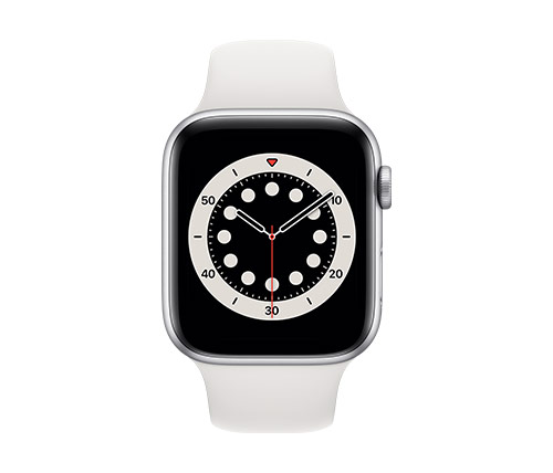 שעון חכם אפל Apple Watch Series 6 GPS 44mm בצבע Silver Aluminum Case עם רצועת ספורט לבנה