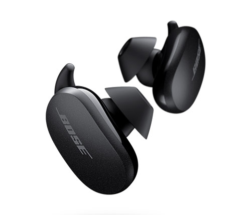 אוזניות אלחוטיות Bose QuietComfort Earbuds Bluetooth עם מיקרופון בצבע שחור הכוללות כיסוי טעינה
