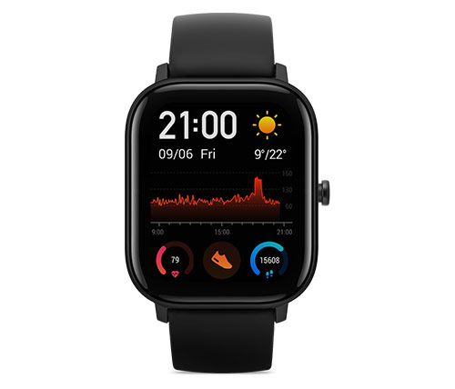 שעון חכם Amazfit GTS בצבע שחור עם רצועה שחורה, אחריות היבואן הרשמי