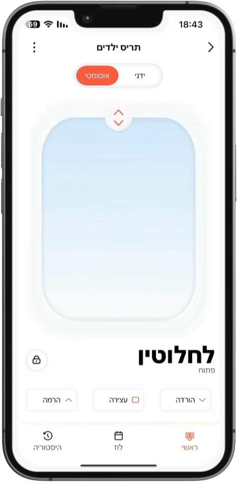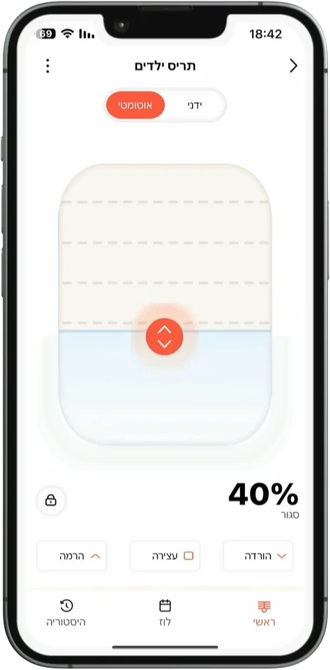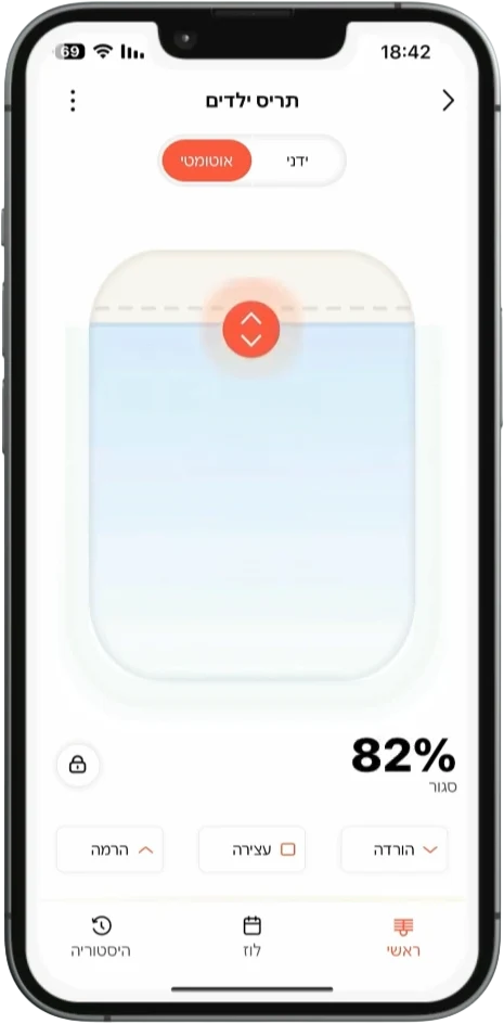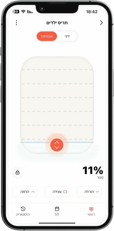 מתג חכם לתריס חשמלי המאפשר שליטה מלאה מהאפליקציה או מהמתג בקיר. כולל כוונון מדויק לפי אחוזים, קביעת לו"זים אוטומטיים והפעלה קולית