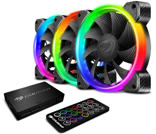 3 מאווררים למארז 12 ס"מ כולל בקר ושלט אלחוטי Cougar Vortex RGB HPB 120 PWM HDB Cooling Kit