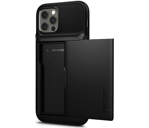 כיסוי לטלפון Spigen Slim Armor Wallet iPhone 12/12 Pro בצבע שחור הכולל מגירה לכרטיסי אשראי
