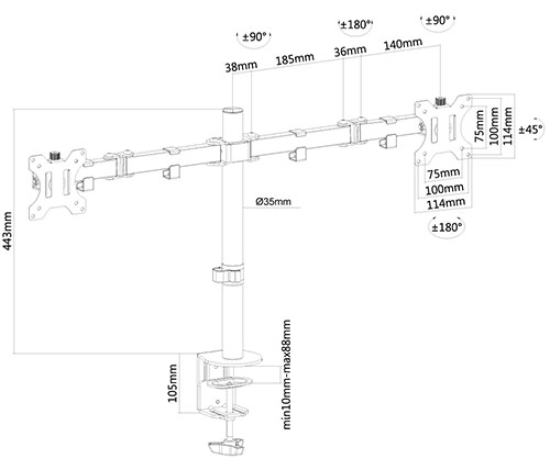 זרוע שולחנית NewStar ל-2 מסכים בגודל עד "32 דגם FPMA-D550DBLACK