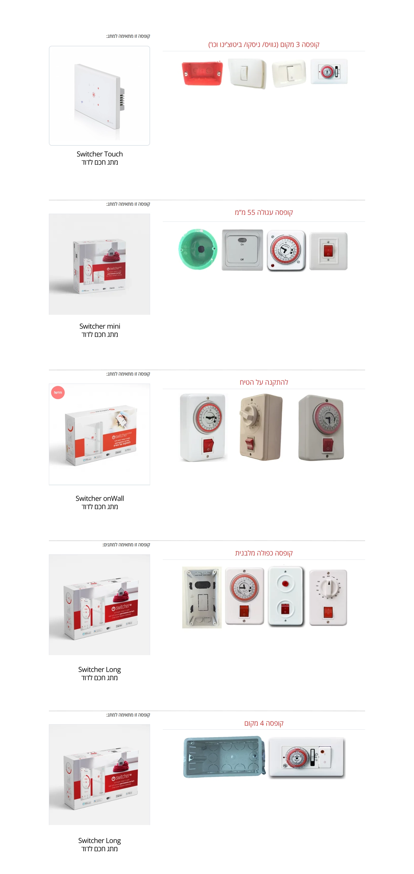 סוויצר Long מתאים לקופסה כפולה מלבנית.