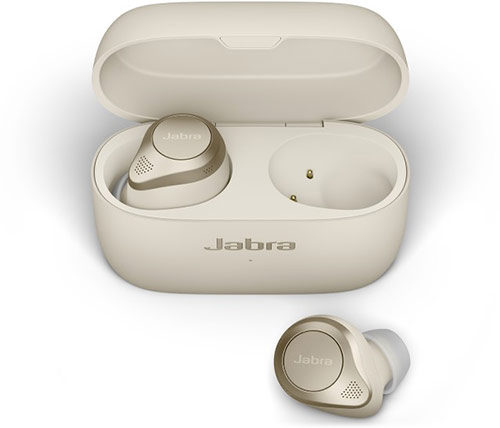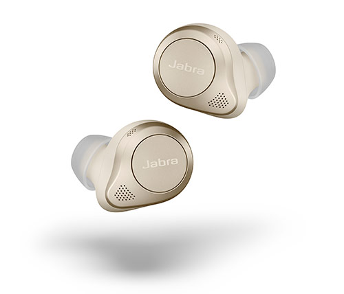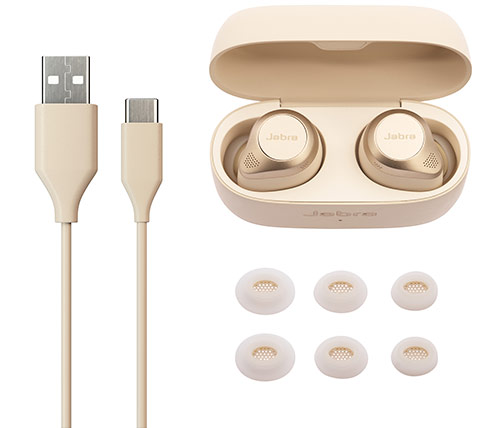 אוזניות אלחוטיות Jabra Elite 85t Bluetooth עם מיקרופון בצבע זהב הכוללות כיסוי טעינה