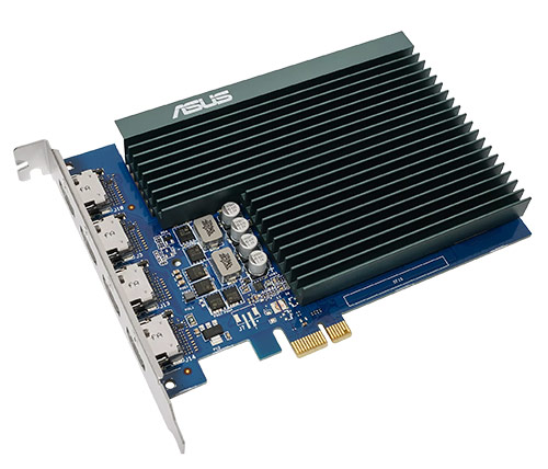 כרטיס מסך תומך 4 מסכים Asus דגם GeForce GT 730 GT730-4H-SL-2GD5 הכולל 2GB זכרון ו-4 יציאות HDMI