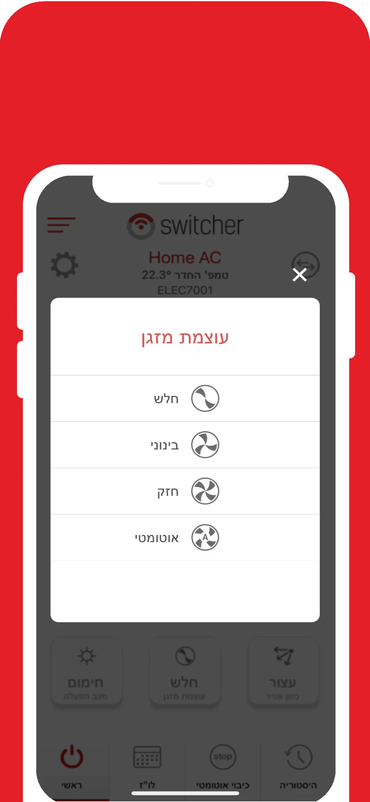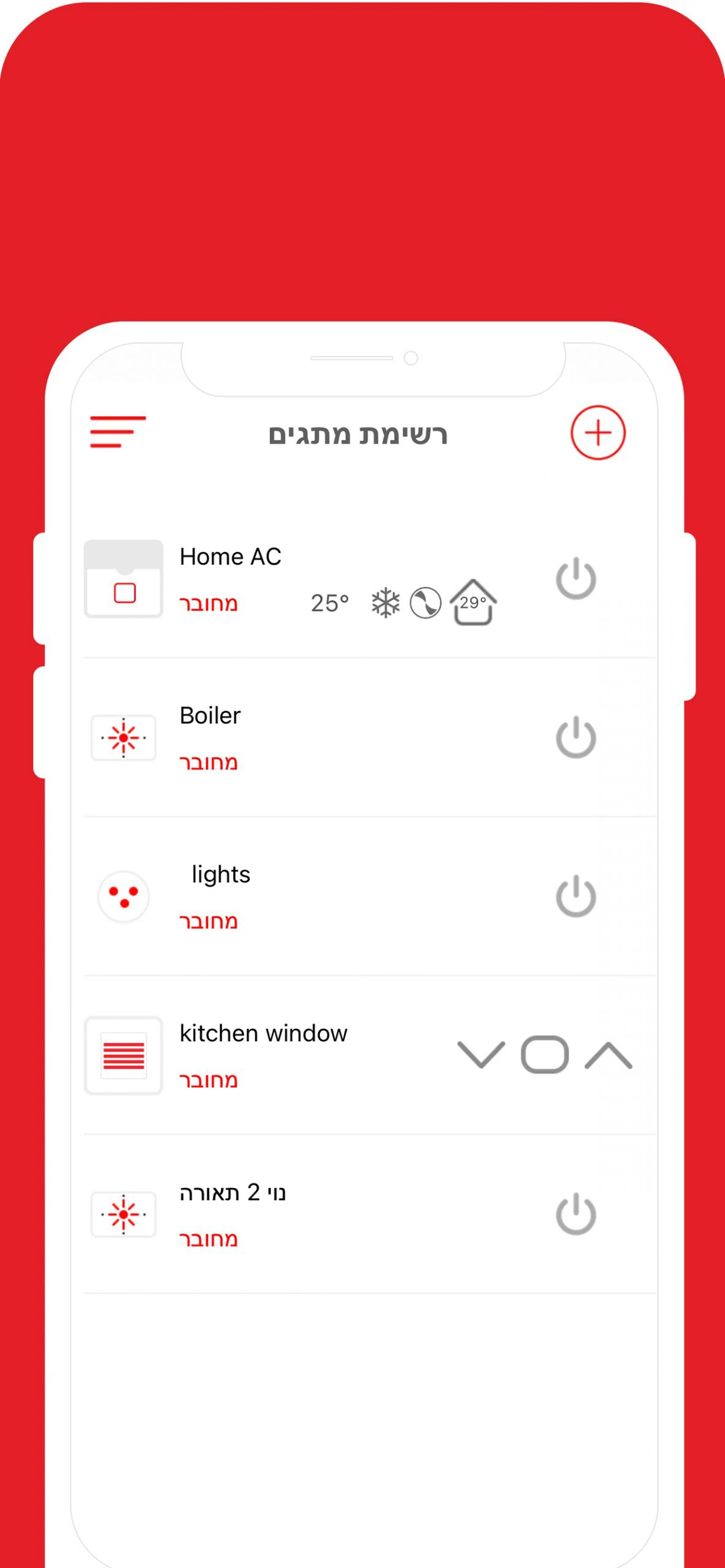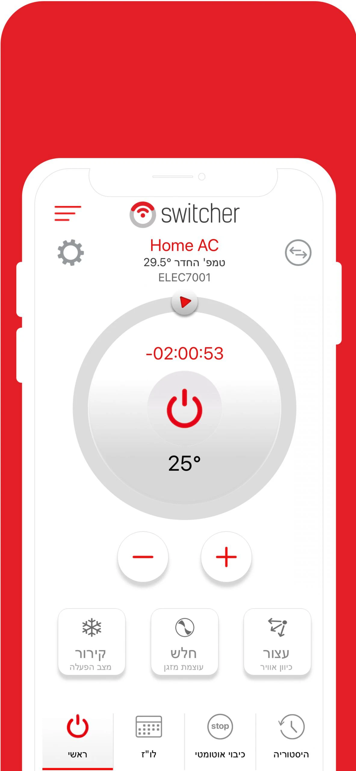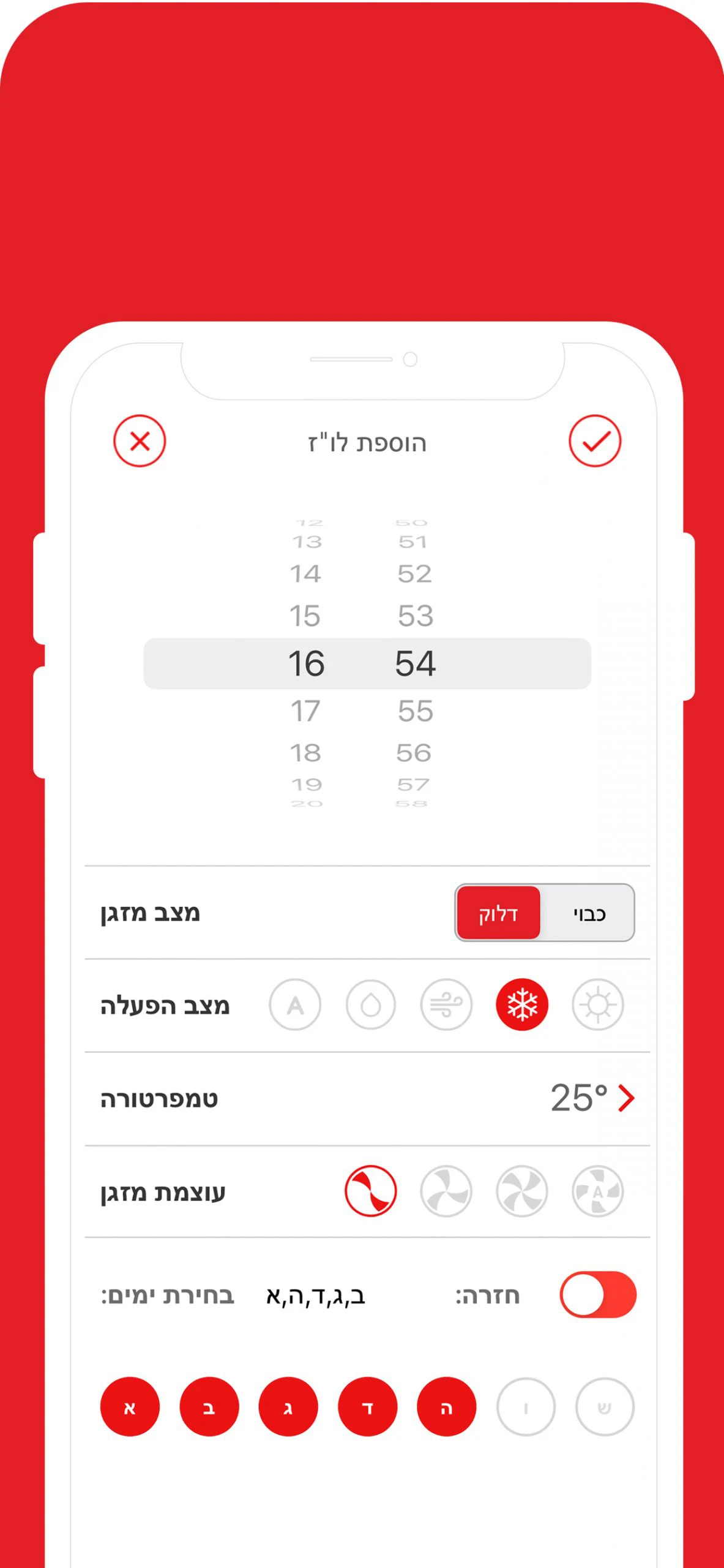 • שליטה מלאה במזגן מהאפליקציה: חום וקור, טמפרטורה, עוצמת מיזוג, חיישן טמפרטורה ועוד