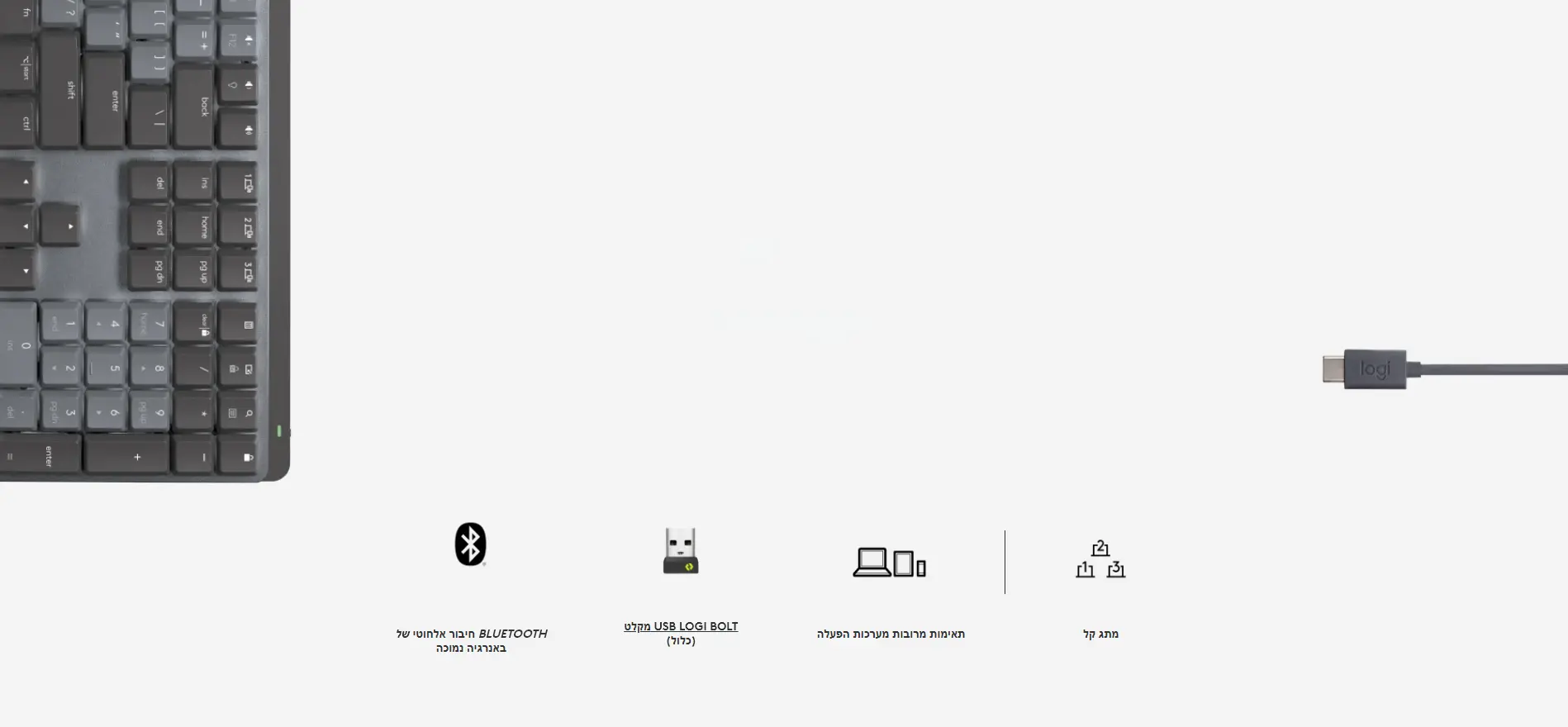 המקלדת תואמת לכל מערכות ההפעלה העיקריות**.ישר מהקופסה***. חיבור ועבור בקלות בין עד שלושה מכשירים בלחיצת כפתור באמצעות Bluetooth Low Energy או מקלט ה-Logi Bolt USB הכלול
