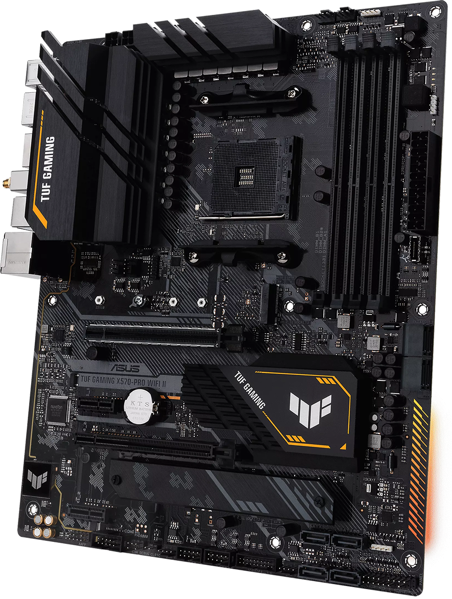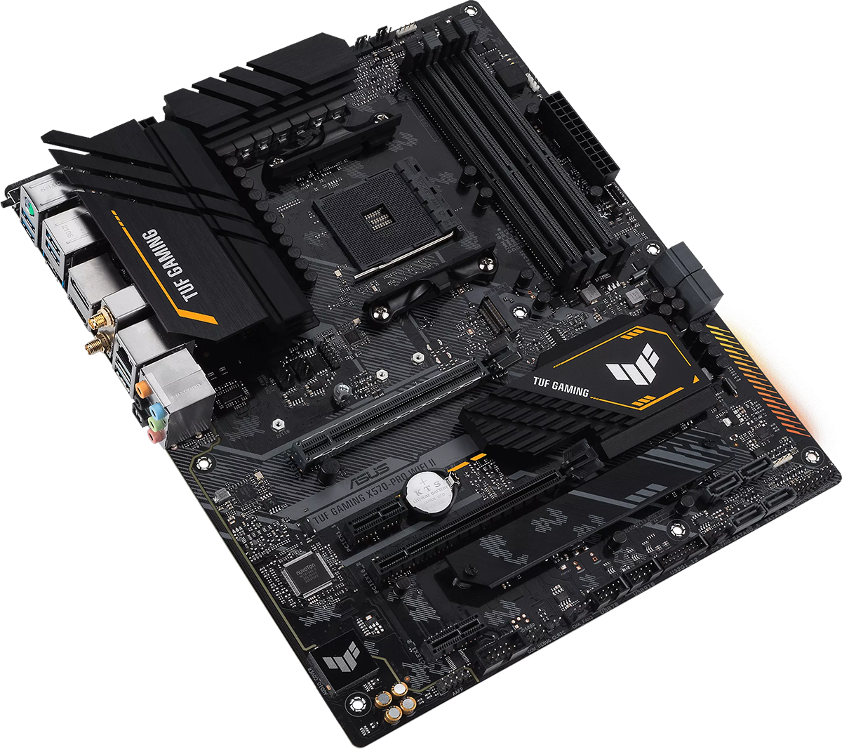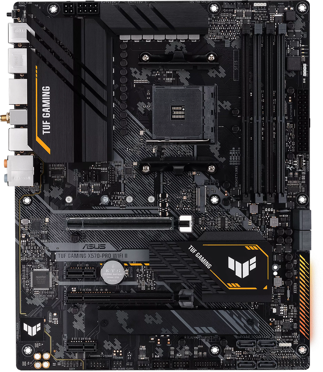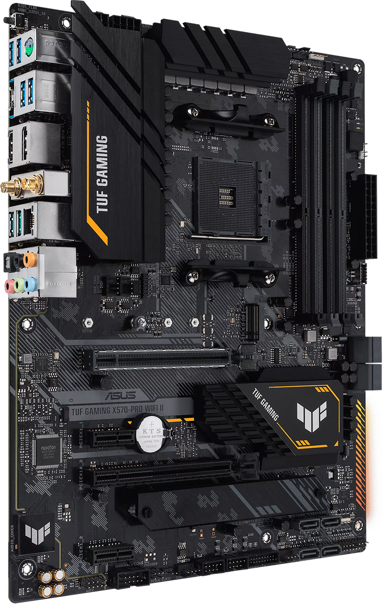 ASUS TUF GAMING X570-PRO WIFI II מאגד את כל המרכיבים החיוניים של מעבדי AMD ומשלב אותם עם פיצ’רים מוכנים לגיימינג ועמידות מוכחת. הלוח הזה מתוכנן עם פתרון אספקת חשמל משופר ומערכת קירור מקיפה – מה שמעניק ביצועים יציבים למשחקי מרתון.