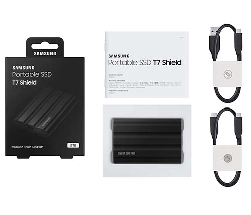 כונן SSD חיצוני נייד 3.2 Samsung Portable SSD T7 Shield MU-PE2T0S/EU 2TB USB בצבע שחור
