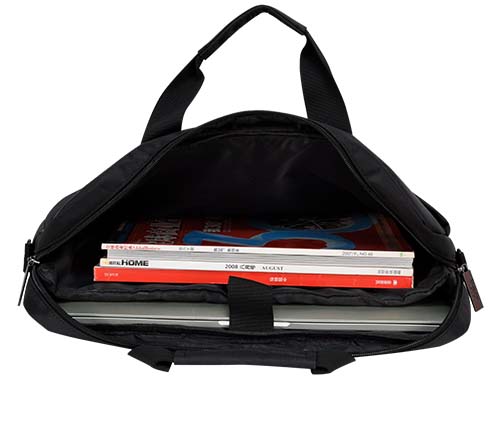 תיק יד למחשב נייד בגודל עד "14 דגם IVORY Style HB1, כולל רצועה לנשיאה על הכתף, תא למחשב נייד מחולק לעוד תא לאחסון מסמכים וכו'., כולל תא נוסף הנסגר בעזרת רוכסן עם מקום ייעודי לאחסן עטים - בצבע שחור