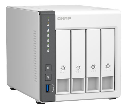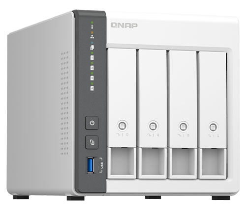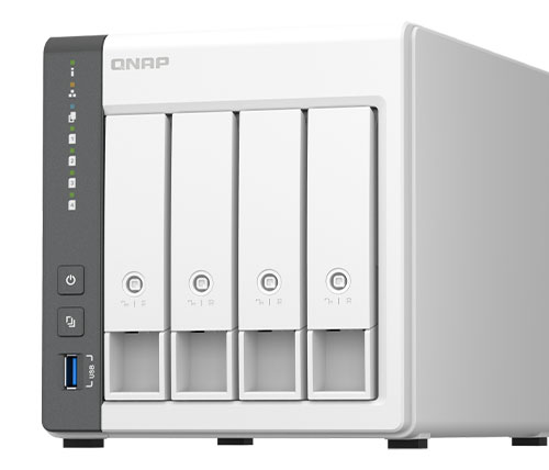 שרת אחסון QNAP TS-433 4-bay NAS כולל 4 מפרצי הרחבה עם מעבד ARM Cortex-A55 ארבע ליבות וזכרון 4GB RAM (ללא דיסקים)