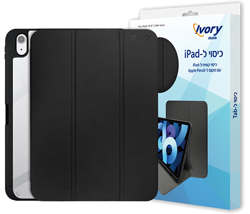 כיסוי לאייפד Ivory Mobile ל- (10th Gen)"Apple iPad 10.9 ו- iPad (A16) בצבע שחור כולל מקום לעט