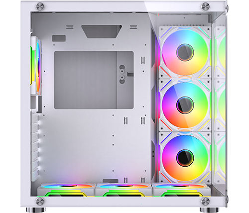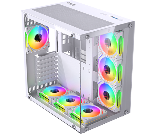 Crystal ARGB מספק קירור עוצמתי הודות ל-7 מאווררי ARGB בגודל 12 ס"מ, הממוקמים בצורה חכמה ברחבי המארז לפינוי חום יעיל. בנוסף תאורת ה-ARGB הדינמית מעניקה מראה מרהיב, עם אפשרות לשליטה מלאה באמצעות שלט אלחוטי או כפתור ייעודי במארז, כך שתוכל להתאים את האווירה בלחיצת כפתור.