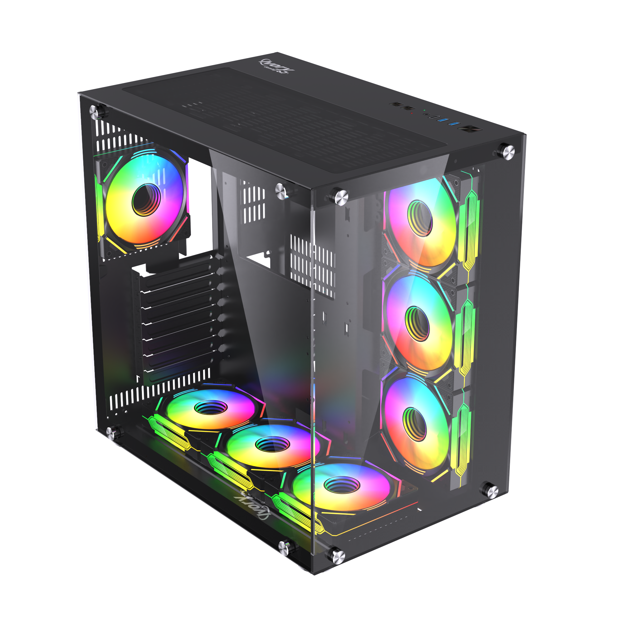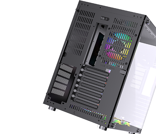 Crystal ARGB מספק קירור עוצמתי הודות ל-7 מאווררי ARGB בגודל 12 ס"מ, הממוקמים בצורה חכמה ברחבי המארז לפינוי חום יעיל. בנוסף תאורת ה-ARGB הדינמית מעניקה מראה מרהיב, עם אפשרות לשליטה מלאה באמצעות שלט אלחוטי או כפתור ייעודי במארז, כך שתוכל להתאים את האווירה בלחיצת כפתור.