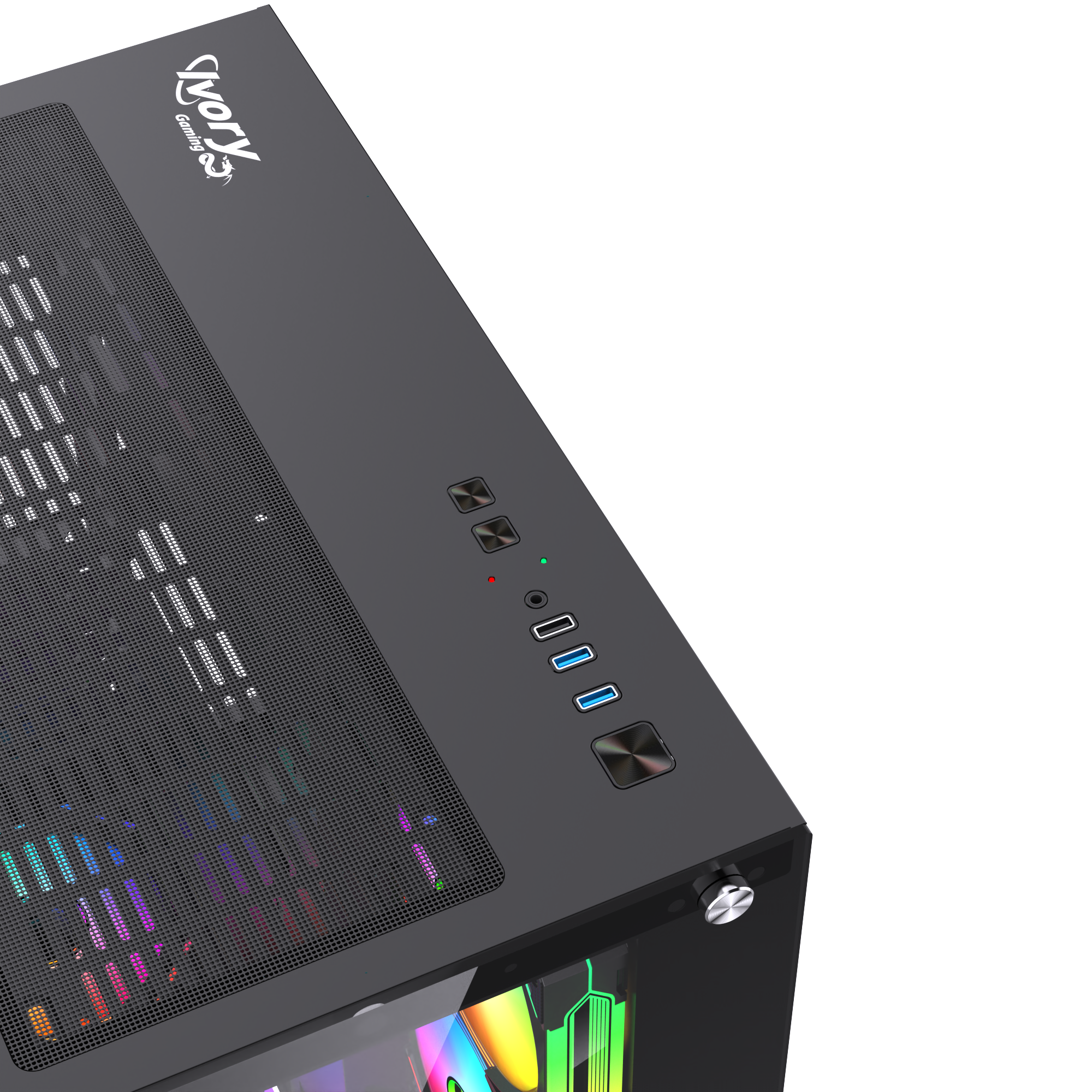 Crystal ARGB כולל 2 חיבורי USB 3.0, חיבור USB 2.0 וכניסת אוזניות או מיקרופון לגישה מהירה. בנוסף, לחצן RGB ייעודי ושלט אלחוטי מאפשרים שליטה מלאה בתאורת ה-ARGB, כך שתוכל להתאים את המראה בקלות.