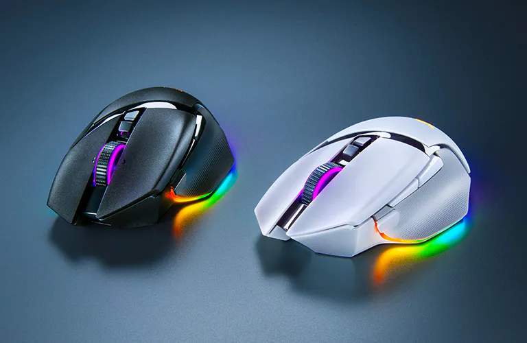 עכבר גיימינג אלחוטי Razer Basilisk V3 Pro בעיצוב ארגונומי עם גלגלת הטייה Razer™ HyperScroll, תאורת Chroma ב־13 אזורים כולל הארה היקפית, ו־11 כפתורים ניתנים לתכנות להתאמה אישית מלאה