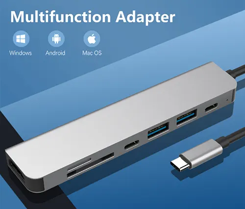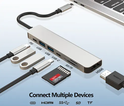 תחנת עגינה למחשב נייד ונייח חיבור USB Type-C, HDMI, USB 3.0x2, PD 3.0 וקורא כרטיסים