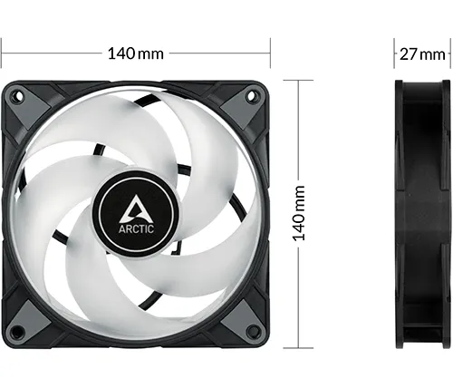 מאוורר למארז 14 ס"מ ARCTIC P14 PWM PST A-RGB בצבע שחור