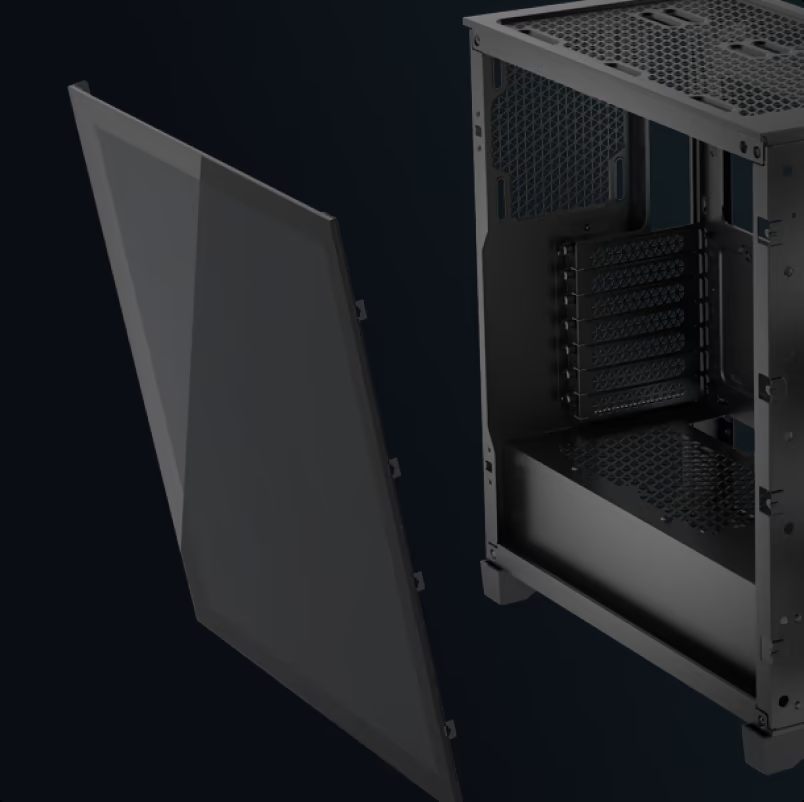 הצג את הרכיבים הפנימיים שלך מאחורי פאנל צד מזכוכית מחוסמת עם חיבור והסרה קלים וללא כלים.