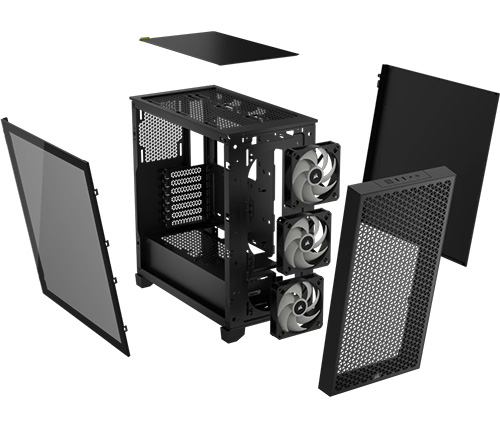 פאנל קדמי מפלדה עם עיצוב אופטימלי המאפשר זרימת אוויר עצומה למערכת שלך לקירור מרבי.
