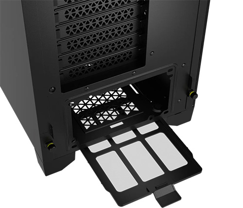 שתי תושבות למאווררי 120 מ"מ מעל כיסוי ספק הכוח מאפשרות התקנת מאווררים לכיוון זרימת אוויר ישירות אל ה-GPU שלך.