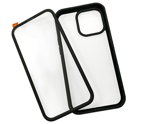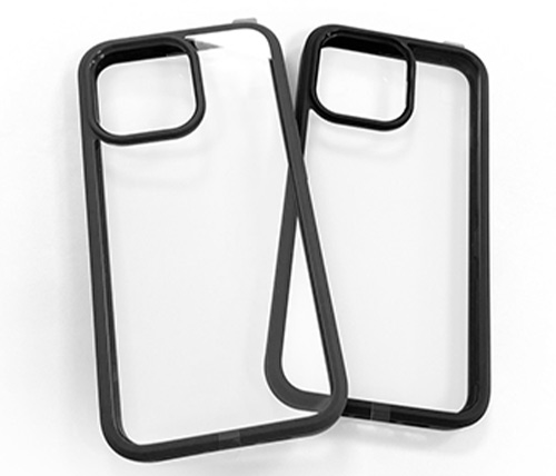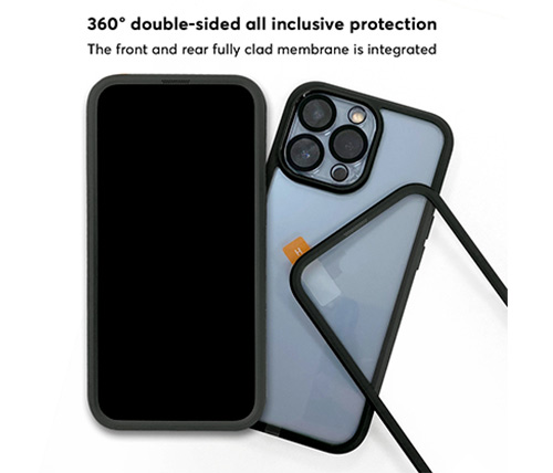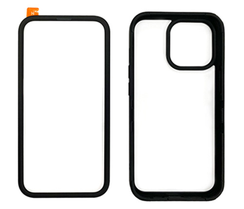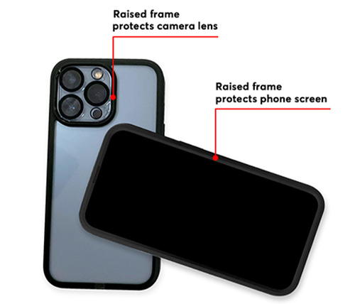 כיסוי אחורי שקוף עם מסגרת שחורה ומגן מסך Ivory Mobile המותאם לסמארטפון מסוג iPhone 14 Pro