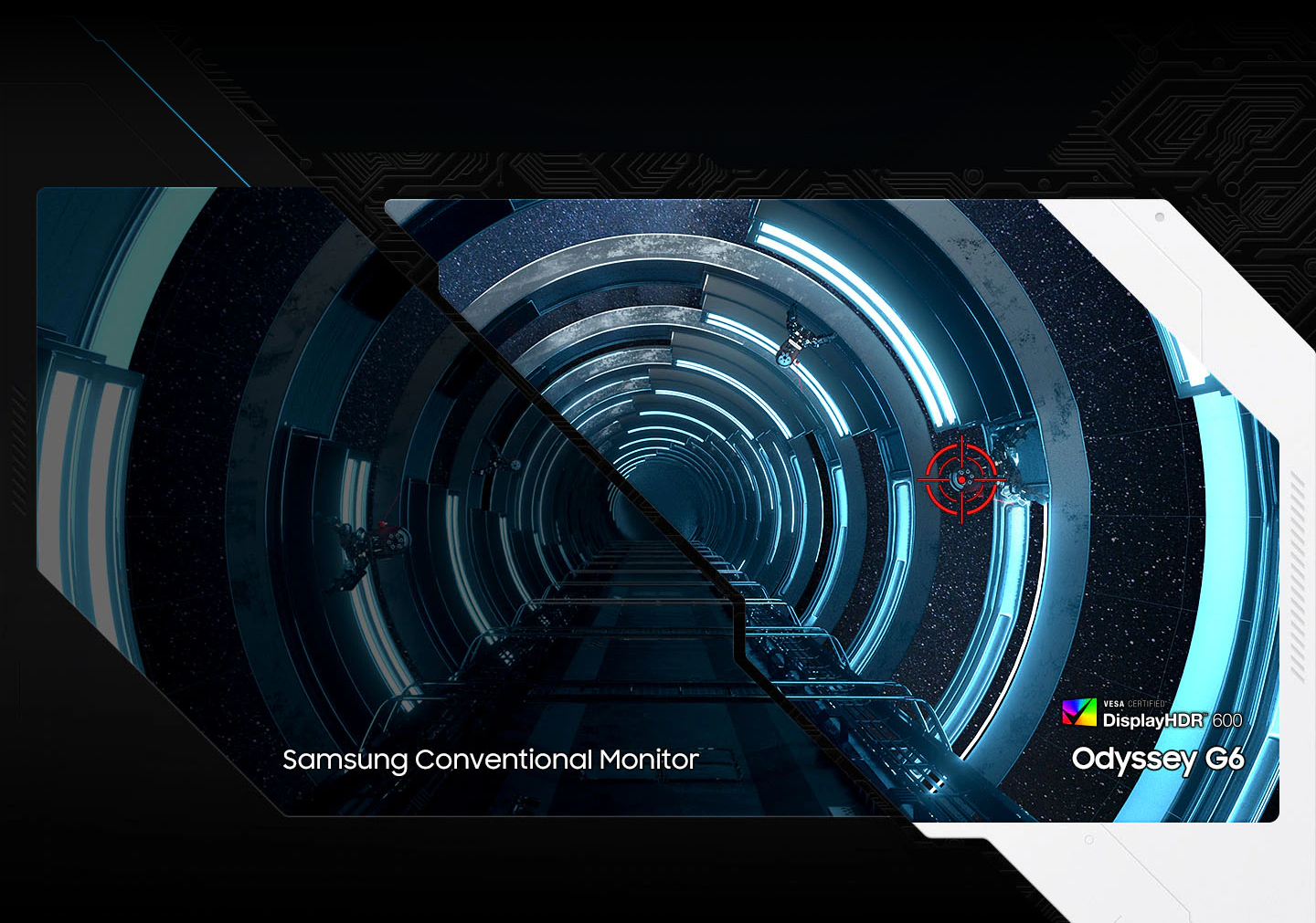 גלו את התמונה במלואה. DisplayHDR 600 מספק ניגודיות עוצמתית יותר – עם שחורים עמוקים ולבנים בוהקים – כדי לעזור לכם לחשוף אויבים או סודות המסתתרים בצללים. גם בסצנות החשוכות ביותר, כל פרט נצבע בבהירות מרשימה.