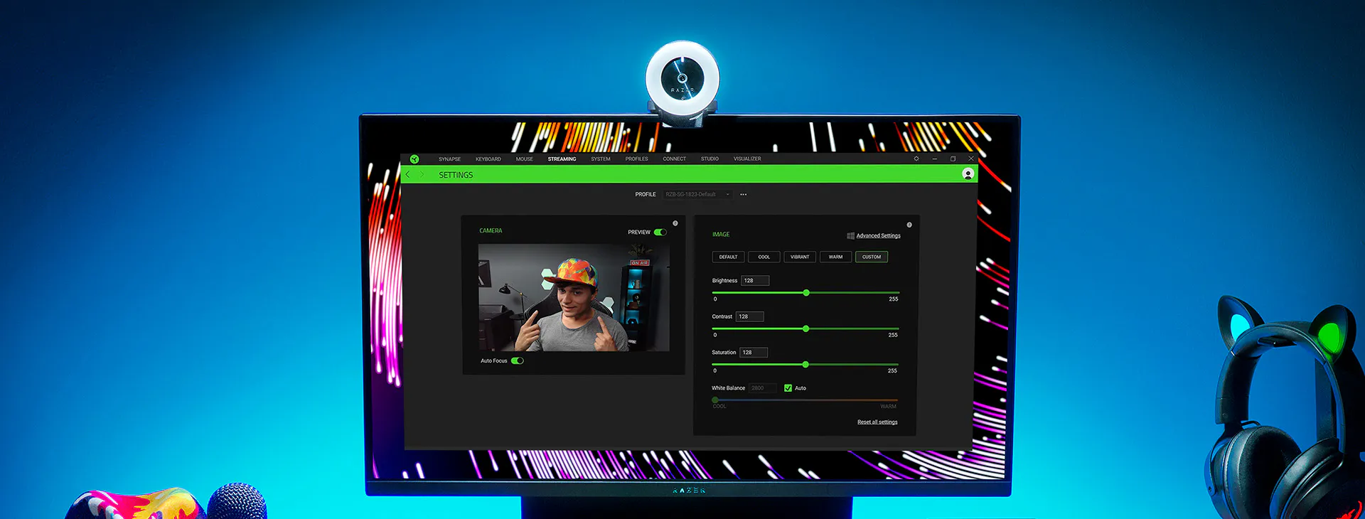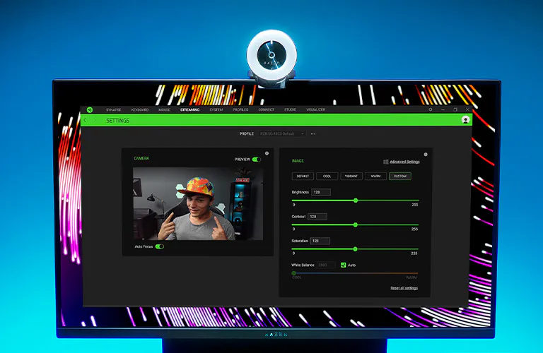 מבהירות וניגודיות ועד לרוויית צבעים – שמור את הגדרות הווידאו המועדפות עליך והיראה במיטבך בכל מצב, בלחיצת כפתור על פרופילים מותאמים אישית. תואם גם ל־OBS ול־XSplit.