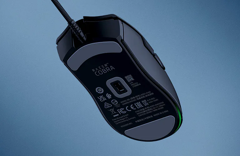 עשויות מהחומר הטהור והאיכותי ביותר, רגליות ה-PTFE של Razer Cobra (בחזית, בגב ובטבעת סביב החיישן) מאפשרות תנועה חלקה במיוחד על כל משטח.