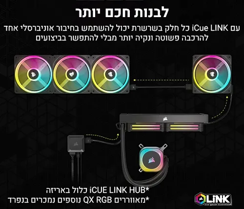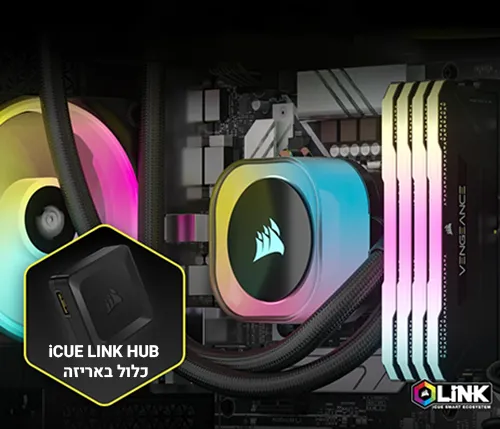 קירור נוזלי למעבד Corsair iCUE LINK H100i RGB 240mm בצבע שחור