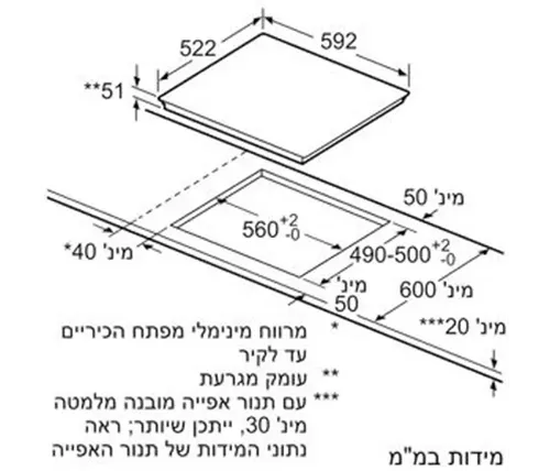 כיריים אינדוקציה בוש Bosch כ 60 ס"מ 4 להבות PUE611BB5Y צבע שחור - משלוח חינם