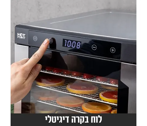 מייבש מזון דיגיטלי 6 מגשים מנירוסטה בצבע כסף Hot point FD-06A - משלוח חינם