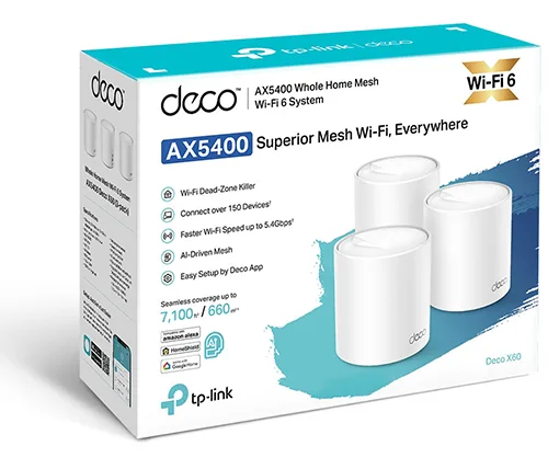 ראוטר מגדיל טווח Tp-Link Deco X60 V3.2 AX5400 Whole Home Mesh Wi-Fi 6 System - שלוש יחידות