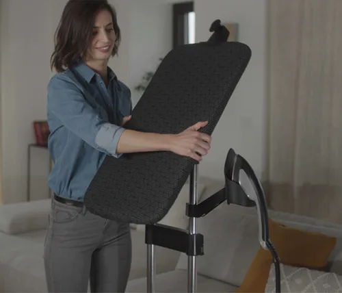 מערכת גיהוץ חכמה IXEO All-In-One Solution הכוללת מגהץ קיטור עוצמתי בשילוב קרש גיהוץ מובנה Tefal QT1510G0 המאפשר גמישות מרבית וחווית גיהוץ אידאלית עם גיהוץ אנכי, אופקי ובזווית של 30 מעלות