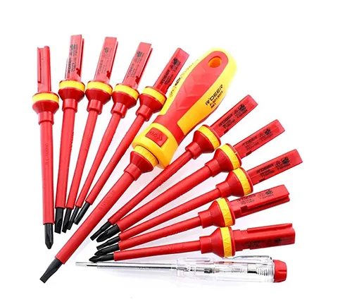 סט 13 חלקים מברגים מבודדים VDE מבית IVORY TOOLS מקנה הגנה על 1000V הסט כולל טסטר, ידית מבודדת למברגים ו-11 מברגים בגדלים שונים