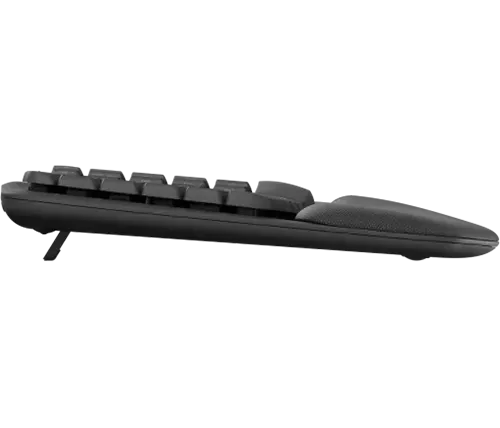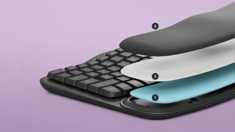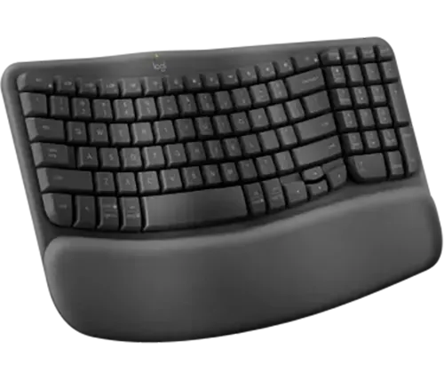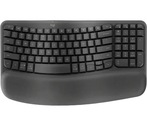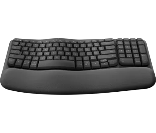 מקלדת בצורת גל עם משענת כף יד מרופדת. הכוללת תמיכה בפרק כף היד, פחות לחץ ותנוחה טבעית של הקלדה לאורך כל היום.