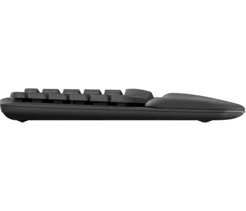 מקלדת ארגונומית אלחוטית עם משענת כף יד מרופדת, להקלדה טבעית והרגשה טובה לאורך כל היום.