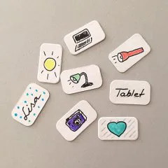כאשר נעשה שימוש בכלי כתיבה מחיק במהלך תיוג (עטים, עפרונות או עטי Frixion), ניתן לעשות שימוש חוזר בתוויות.