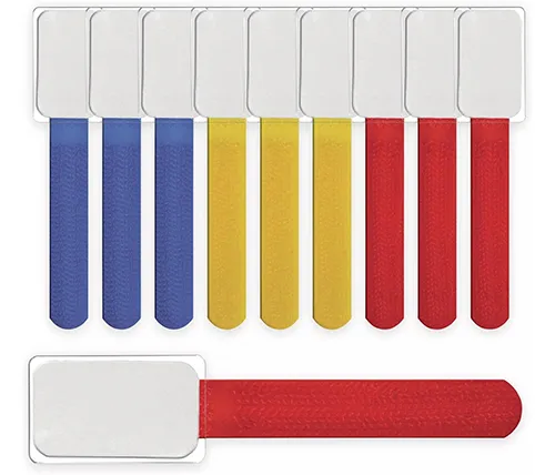 תווית + סקוטש לכבלים Label The Cable Mini Tags בצבעים כחול צהוב ואדום - 10 יחידות