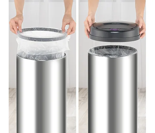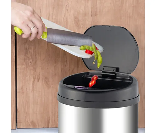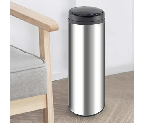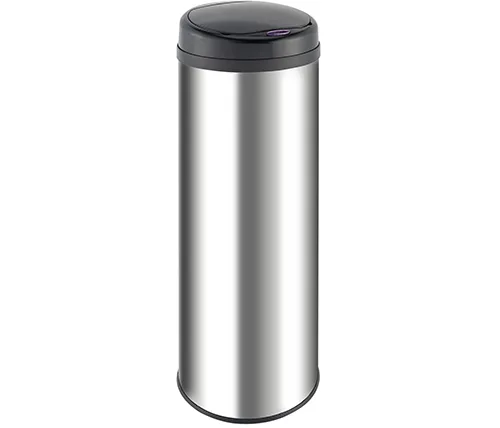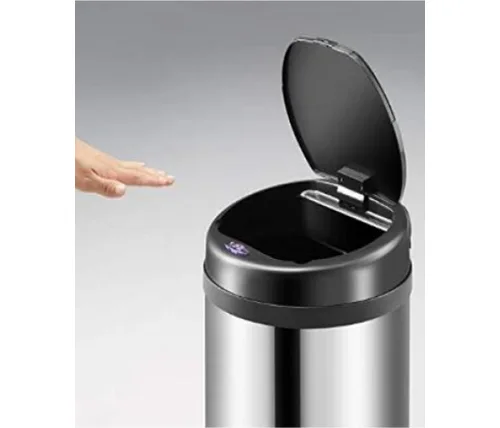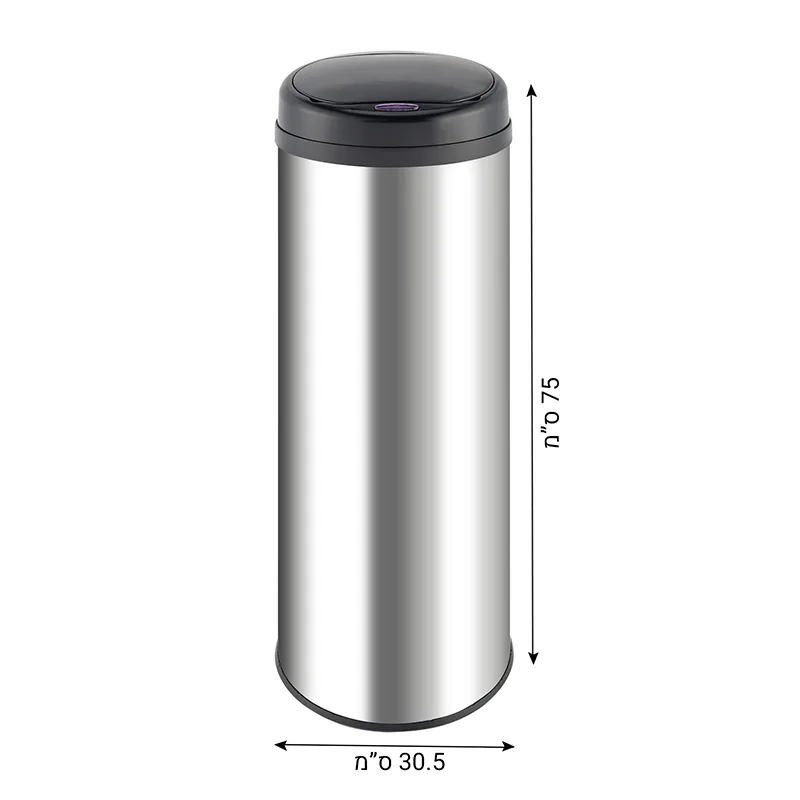 פח אשפה למטבח חשמלי 47 ליטר עגול מנירוסטה בצבע כסוף עם מכסה שחור Ivory Home TRASH-47L-S