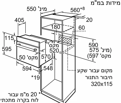 תנור בילד אין בוש Bosch Serie 2 נפח 66 ליטר דגם HBF113BR0Y נירוסטה - משלוח חינם
