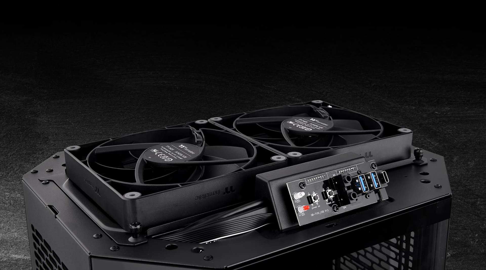 המארז מגיע עם שני מאווררי PWM בגודל 140 מ"מ המותקנים בחלק העליון, לצורך ביצועי קירור מצוינים.